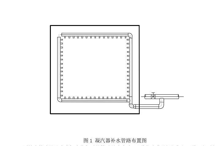 综上所述,要根据凝汽器喉部尺寸,确定凝汽器内“补水装置”的管道布置方式和位置,然后再确定喷咀防止松动及“补水装置”在凝汽器内的支承。