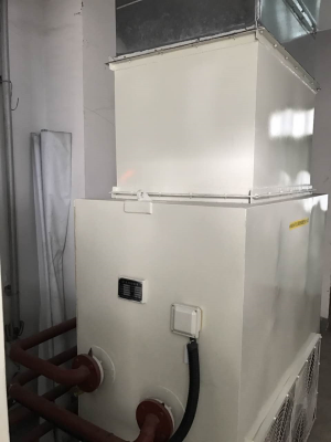 相对而言,空水冷却器体系是一种效率较高、节能环保的冷却体系。此种体系广泛应用与水泥、电力、钢铁行业的高压变频器冷却体系中,其主要特色如下: 冷却气流下进上出,流向布局合理,空气流与冷却水流向近似逆流,对数温差大,冷却效率高;